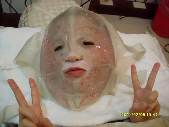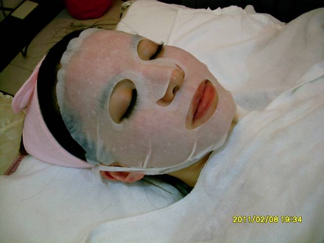 打完之後就開始敷面膜讓他紓緩一下,冰冰涼涼很舒服,